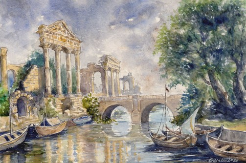 165 - Scoperta di una città dimenticata - Acquarelli - 36x26 cm